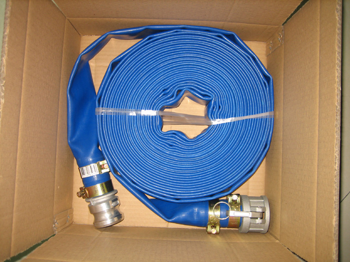 Our PVC layflat hose, commonly referred to as lay flat hose, water discharge hose,delivery hose, pump hose, and flat hose is perfect for use with water, light chemicals and other industrial, agricultural, irrigation, mining and construction fluids. Manufactured with a continuous high tensile strength polyester fiber circularly woven to provide reinforcement, it is one of the most durable lay flat hoses in the industry and is designed as a standard duty hose in residential, industrial and construction applications.